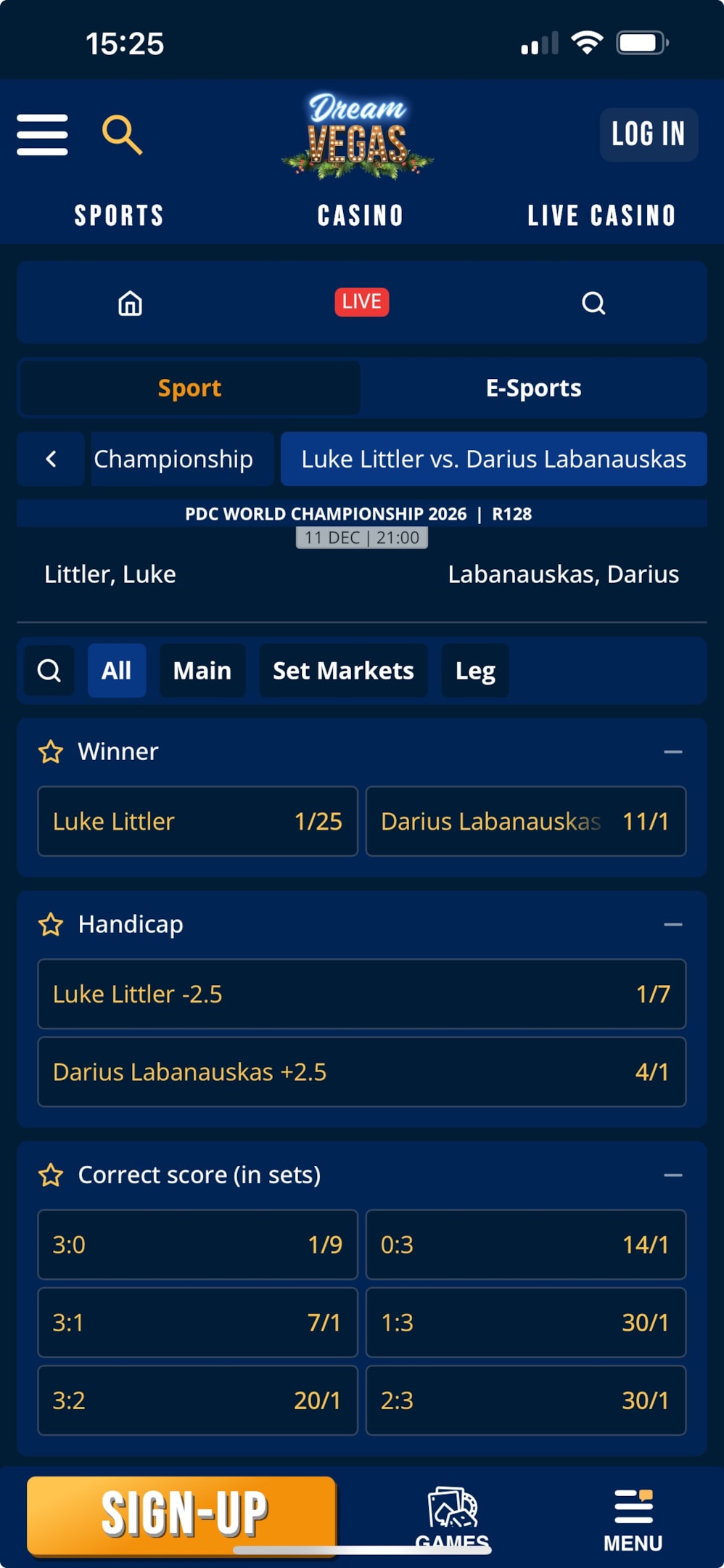 I assessed the darts coverage on Dream Vegas within their sportsbook, and as a smaller name, I wasn't expecting too much, but was pleasantly surprised with what they had on offer during the World Championships.