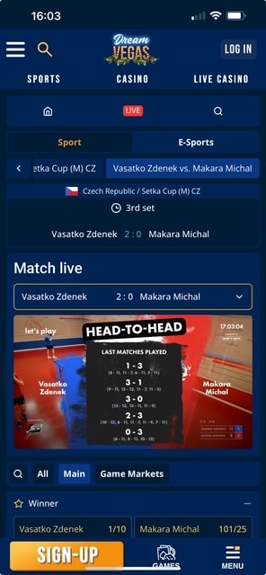 Not only that, but there were also head-to-head stats, a blog detailing flashpoints, and other valuable nuggets of information, so I was equipped. The computer-style graphics brought me closer to the action, so when you play at Dream Vegas, don't skip the live betting area!