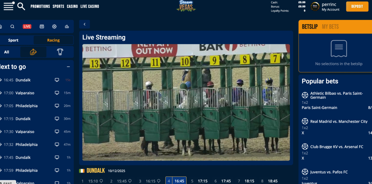 By all accounts, this was highly disappointing. There was no UK horse racing coverage to be found, and forget about Best Odds Guaranteed (BOG) either. While other sites, such as Paddy Power or Betfred, offer unique non-runner-style promos and extra places, this wasn't the case at Dream Vegas.