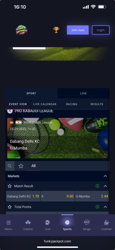 With over 30 sports to call upon, Funky Jackpot doesn't leave many stones unturned. This is in line with other reputable sites, such as William Hill and Ladbrokes. Niche sports like Kabbadi will go down a storm for punters looking to veer away from the norm.