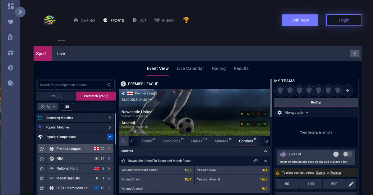 Ahead of a Premier League clash between Newcastle and Arsenal, I could find a market for Newcastle to score and match result, or Double Chance and BTTS, so I was kept on my toes. For other betting on Premier League matches, there were new player props offered, such as the number of goalkepeer saves, ranking well alongside the likes of more established operators like BetMGM.
