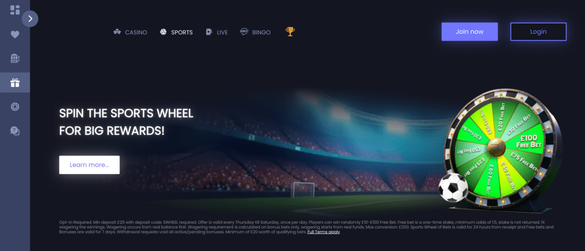 There is also a Sports Wheel that needs spinning. Unlike the Lucky Dip feature associated with talkSPORT, spinning the wheel could see you grab up to ยฃ100 in free bets.