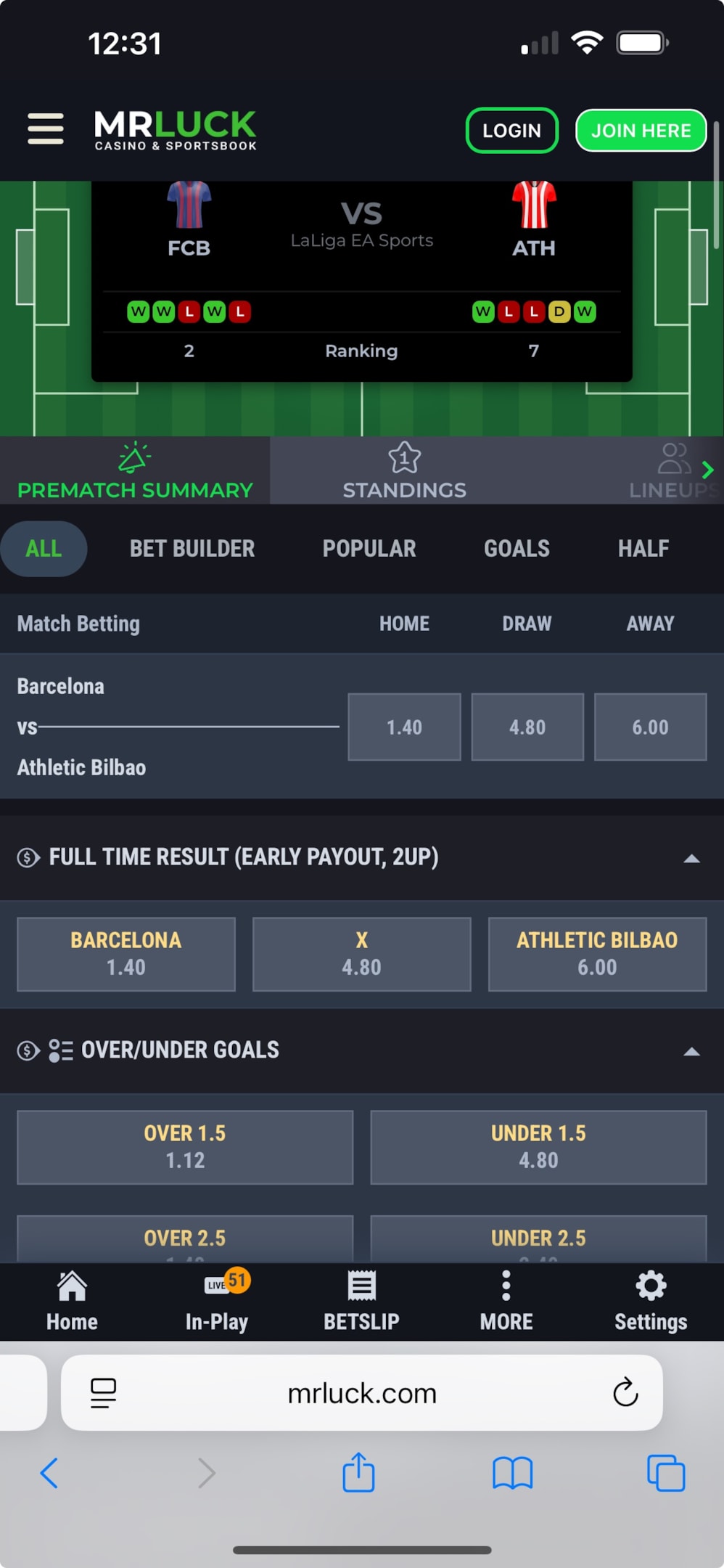 The mobile betting experience is an essential part of the wagering experience. Mr Luck does itself justice with a mobile browser that is smooth and devoid of glitches. On one occasion, I did notice empty sports markets when I loaded the odd page; however, such occurrences were rare. The mobile browser replicated the desktop experience with many of the same cornerstones, such as favourites, meaning you can pin a team or market before making a bet.