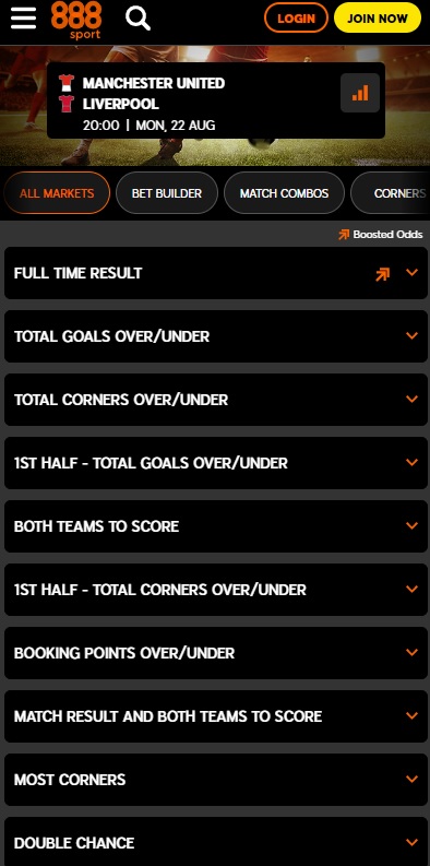The usability and interface of 888Sports site is nothing short of fantastic.