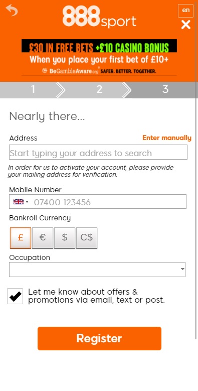 Signing up is relatively painless on all of the 888 platforms and only takes a few minutes. It is a 3-step process.
