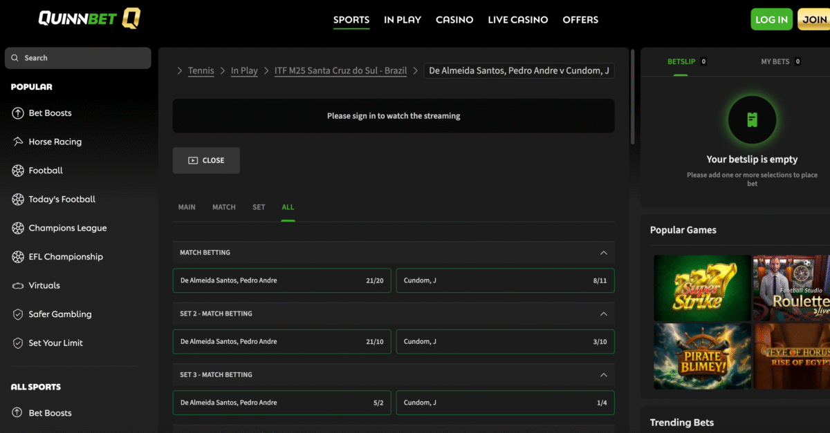The bet boosts were inviting, as odds were raised from 11/5 to 5/2 or in some cases went further, changing in real time. Also, don't swerve the trending bets to see what has created a buzz among other punters. This is a popular feature and not just limited to those who create a QuinnBet account.