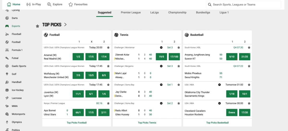 Meanwhile, Unibet has a few eye-catching features. Apart from a range of daily boosted odds, which are competitive, you can unlock combo boosts in the rewards area, where you can receive up to a 40% boost on bet builders with 10 legs or more. Oh, and there are favourites, so you can circle your preferred teams or leagues and return to them at a later point to place a bet.