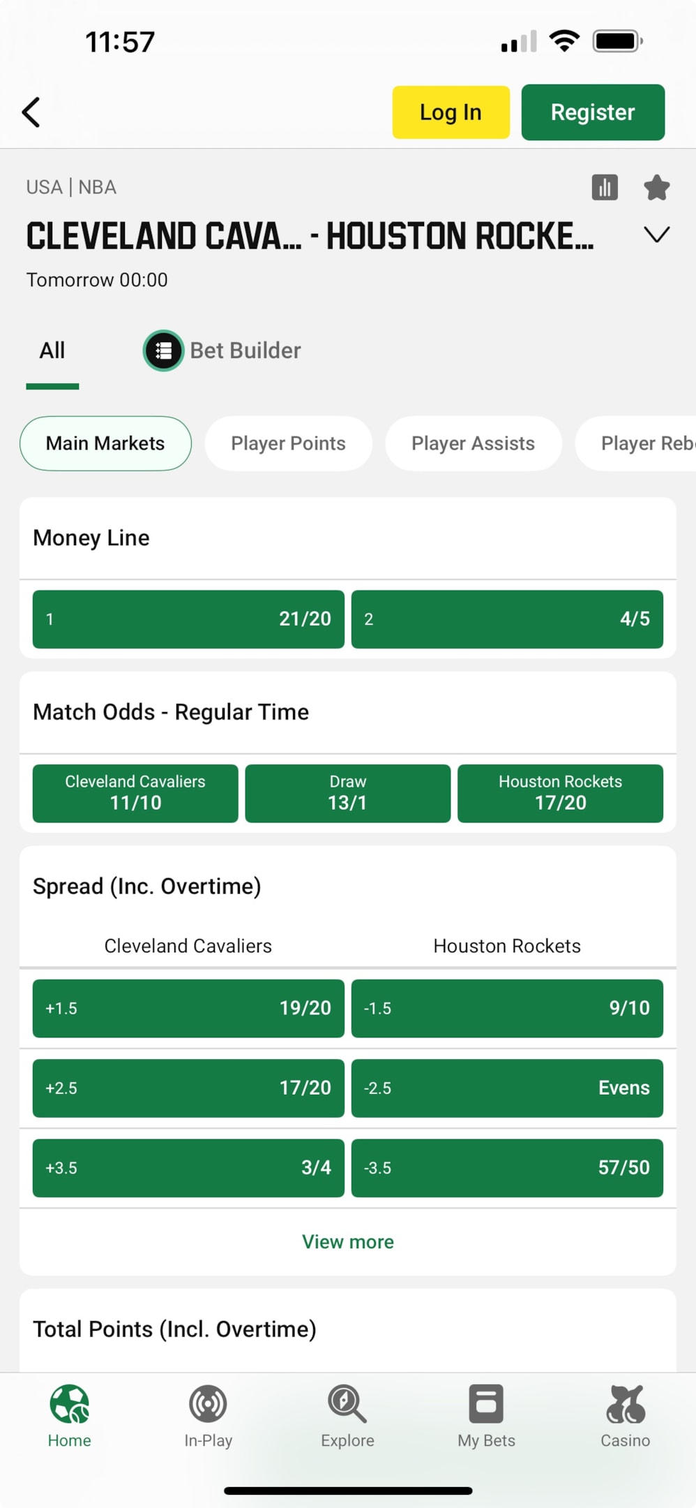 Technically speaking, this should be Unibet apps as there are separate apps dedicated to Unibet poker and casino. However, sticking to the sports app, it packs a punch. Betting apps like Unibet are revered because of their ease of use, and having a fingerprint login feature will benefit those who have a habit of losing track of passwords. Anyway, once you've accepted the geolocation terms, the Unibet app didn't crash. I was treated to a multitude of lines, and if anything, the app is a bit sharper presentation wise than the desktop product.