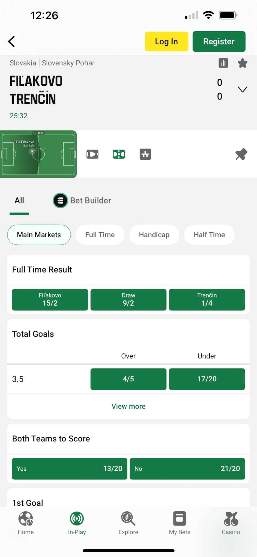 Compared to Betfred and Coral, Unibet's in-play product is more fluid, certainly in terms of not suspending markets for long or having time lags.