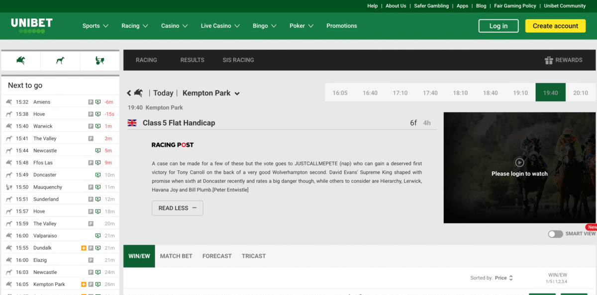 Provided you have a Unibet account, you can make the most of this privilege. It may not be quite as crisp as bet365, but as long as you have a positive balance or have made a deposit within the past 24 hours, the world is your oyster.