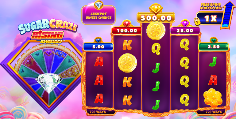 You could potentially win up to 5,000x your stake, and the biggest payouts come from features such as Rising Rewards. This is where reels connect to one of five progressive jackpots that grow as you collect Trigger tokens. Sugar Craze Rising Rewards also has wild symbols and a free spins bonus. This free spins round comes with Rising Rewards Multipliers up to 15x.