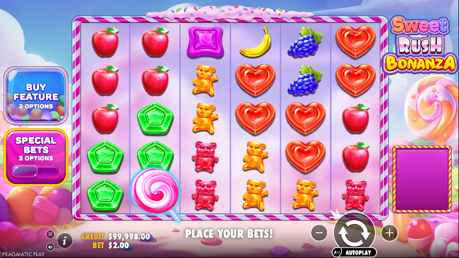 Sweet Rush Bonanza is an online video slot from Pragmatic Play that combines two of the provider’s most iconic games, Sweet Bonanza and Sugar Rush. This blockbuster mashup bursts with colour, charm, and energy, inviting players into a whimsical world filled with fruits, gummy bears, and glimmering candies.