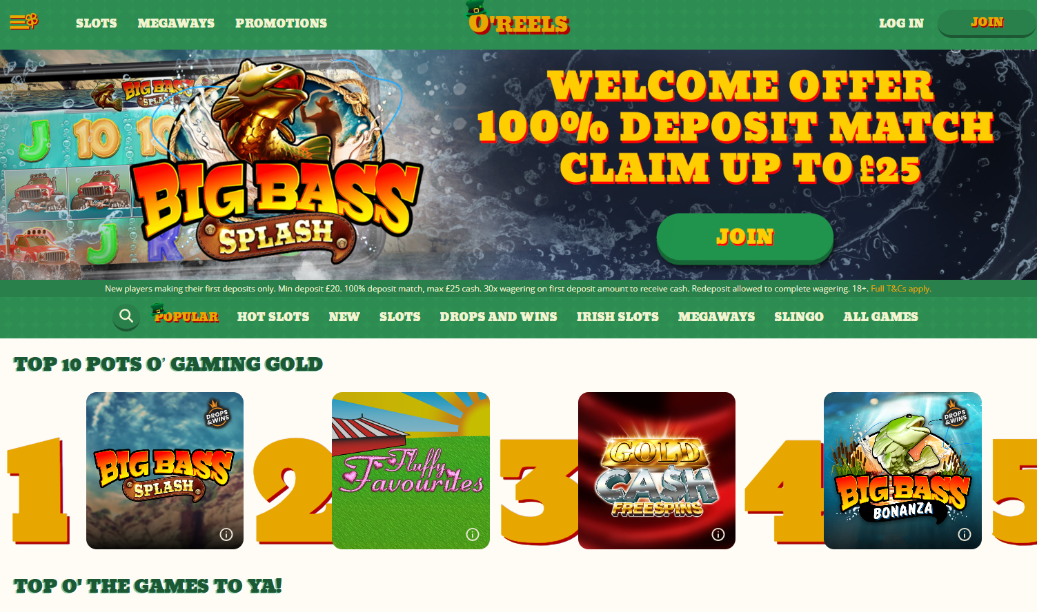O'Reels offers a relatively generous welcome offer for new players, a 100% deposit match up to £25. The process of claiming the bonus is pretty straightforward; there's no bonus code required, and all you have to do is simply make a first minimum deposit of £20. The bonus funds will be applied to your account immediately.