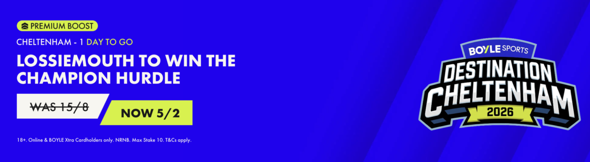 BoyleSports have boosted Lossiemouth to 5/2 to win the Champion Hurdle - for all customers! 🏇